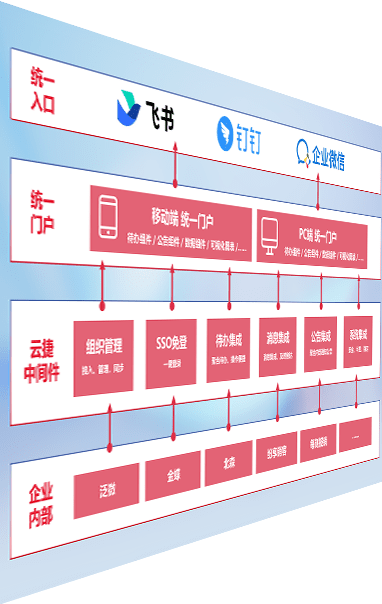 对协作平台提供支持服务,,,支持企业应用与协作平台对接,,,,包含组织同步、、、消息集成、、待办集成等。。。支持目前主流的协作平台:钉钉、、、企微和飞书。。。。
